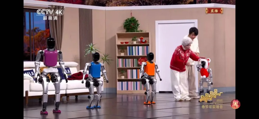 其中,松延动力旗下的机器人参与小品《奶奶的最爱》,在节目中化身“奶奶的最爱”机器人,不仅与演员默契配合,还在结尾处即兴表演了一段整齐划一的舞蹈,将现场气氛推向高潮。