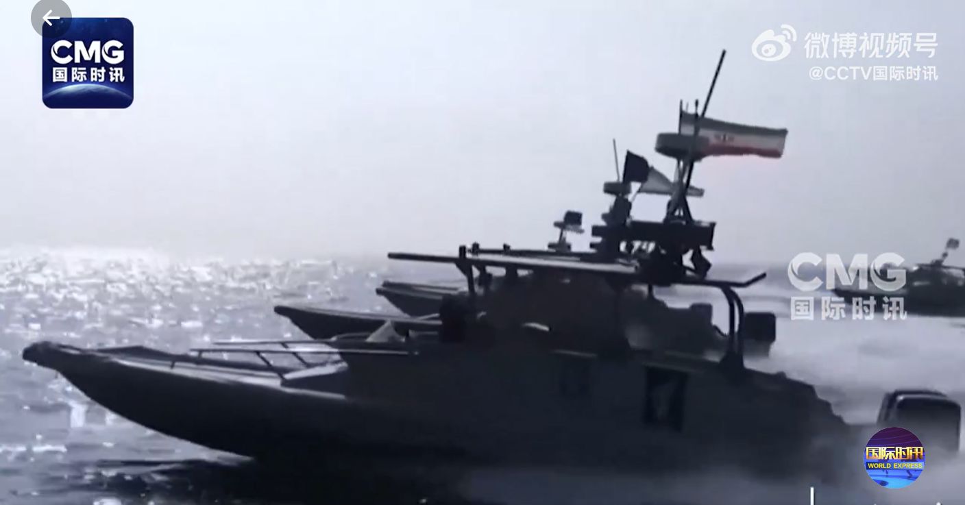 当地时间16日,伊朗伊斯兰革命卫队海军在霍尔木兹海峡举行军事演习。