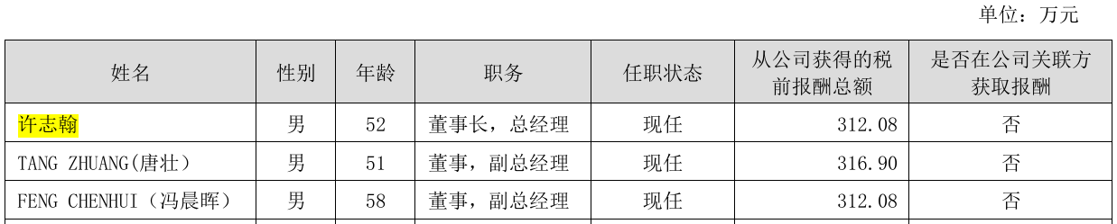 公司2024年年报披露的简历信息显示,许志翰,男,1972年出生,中国籍,清华大学计算机科学与技术专业学士、硕士研究生,美国圣克拉拉大学电子工程专业硕士研究生,中欧工商学院工商管理EMBA。2006年7月至今任卓胜微电子(上海)有限公司董事长、总经理,2012年8月至今任公司总经理,2013年3月至今任Maxscend Technologies(HK)Limited(卓胜香港)董事,2017 年 8 月至今任公司董事长,2019年11 月至今任成都市卓胜微电子有限公司执行董事、经理,2020年3月至今任江苏芯卓投资有限公司执行董事、总经理,2022年2月至今任Maxscend Technology JAPAN株式会社(卓胜日本)董事。