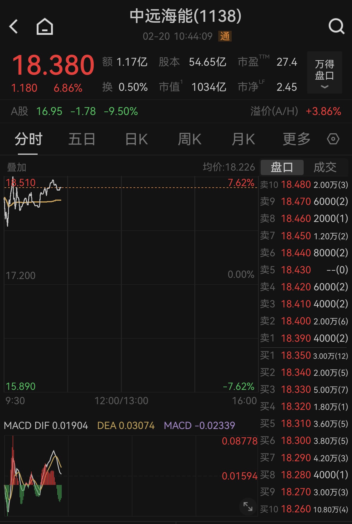 上证报中国证券网讯(记者何漪)2月20日,中远海能H股高开。截至10时44分,中远海能H股报18.38港元/股,上涨6.86%。