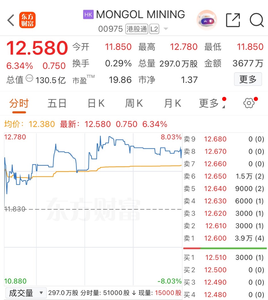 2月20日为港股马年首个交易日,当日港股跳水。截至收盘,MONGOL MINING股价涨6.34%,报12.58港元/股。