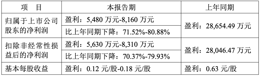哈尔斯1月29日披露2025年度业绩预告,预计2025年归母净利润5480万元至8160万元,同比下降71.52%-80.88%;扣非净利润预计5630万元-8310万元,同比下降70.37%-79.93%;基本每股收益0.12元/股-0.18元/股。