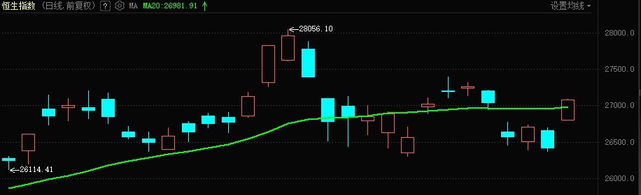 指数方面,恒生指数开盘表现强劲,报26798.97点,上涨385.62点,涨幅1.46%;开盘后持续走高,截至9时51分,实时报27010.24点,涨幅扩大至2.26%,日内最高触及27041.0点,成交额达397.91亿港元,延续近期震荡回升态势。