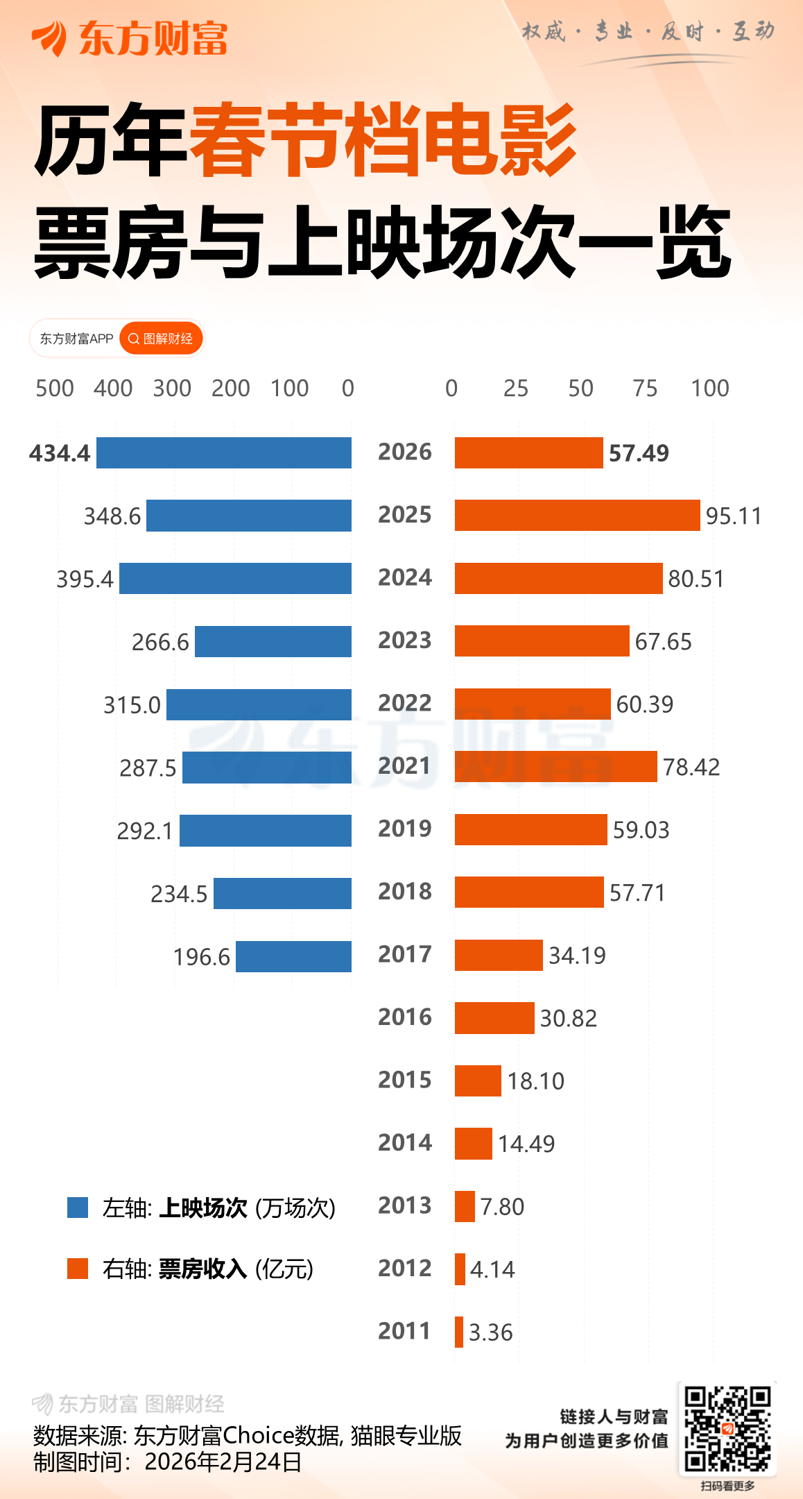 值得一提的是,从全年票房来看,2月23日下午,据央视新闻援引网络平台数据,2026年年度电影总票房(含预售)突破80亿,暂列全球单一市场票房第一。此外,截至目前,2026年2月票房已超60亿元。