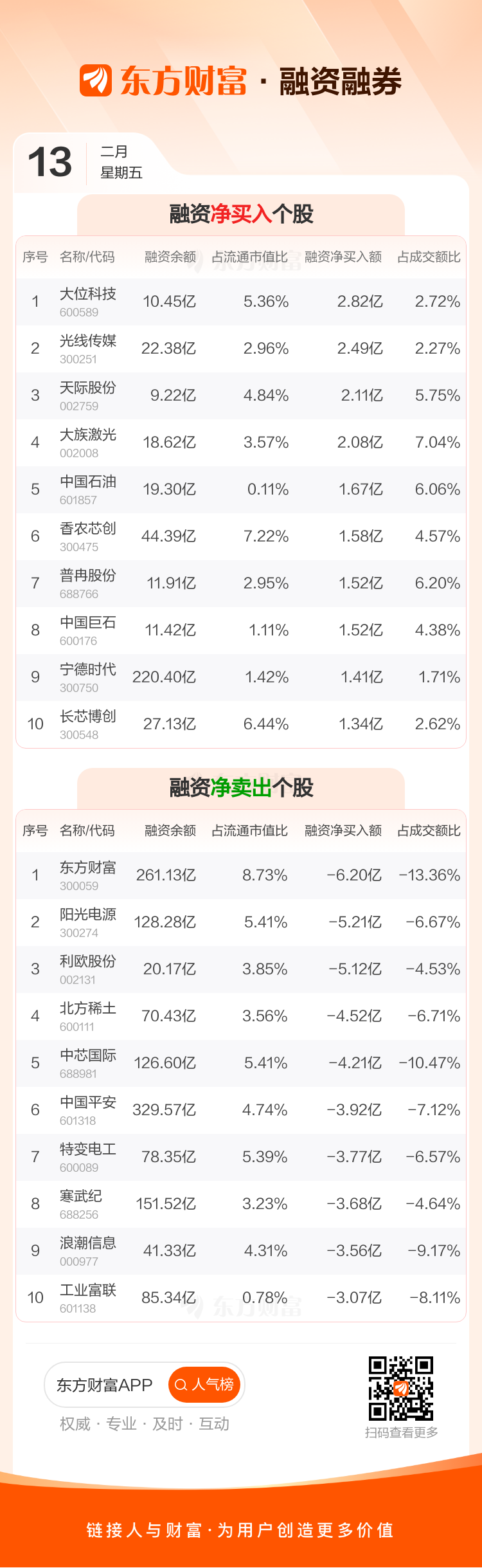 东方财富为当日融资净卖出最多个股,为6.20亿,阳光电源融资净卖出5.21亿,利欧股份5.12亿。