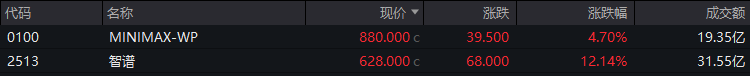 AI应用方向部分活跃,智谱涨超12%,MINIMAX-WP涨近5%。