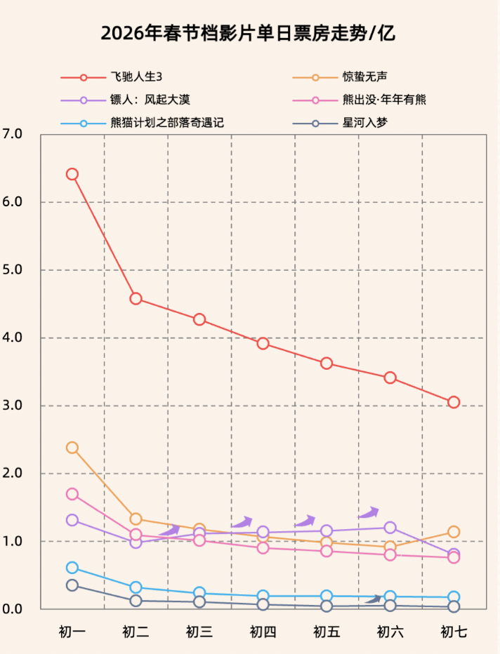 《飞驰人生3》的断层胜利,也为春节档市场规律提供了新的注脚:经过市场验证、持续迭代的成熟IP,仍是超大档期里最稳妥的确定性。猫眼专业版分析,“在超大档期的激烈博弈中,成熟IP凭借深厚的受众基本盘与确定的情绪价值,展现出绝对的竞争优势与更高的抗风险能力。”