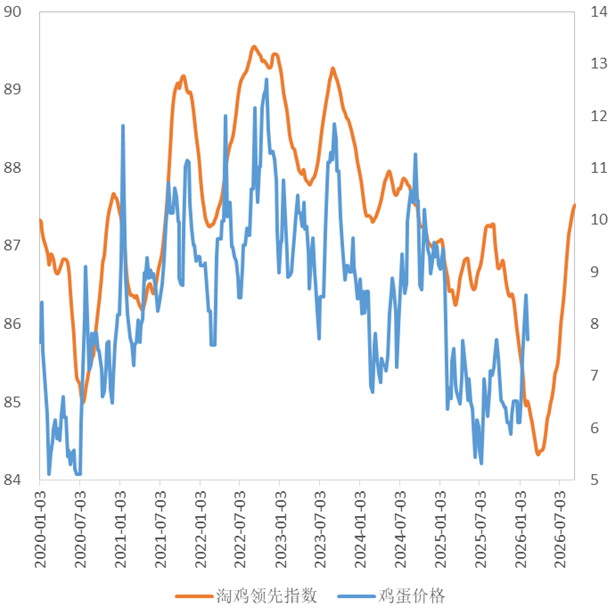 基于鸡蛋基本面周期推演,预计2026年蛋鸡养殖行业将从出清期过渡至回暖期,鸡蛋价格在回暖期将呈现温和上行态势。根据所构建的淘鸡指数的领先性特征判断,预计蛋价拐点将于清明节前后出现。
