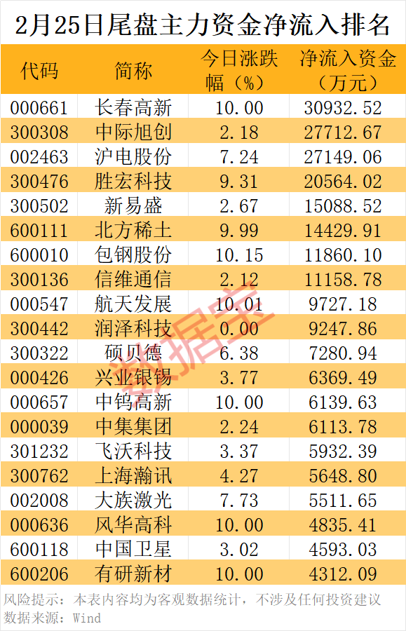 从个股来看,尾盘8股主力资金净流入均超1亿元。长春高新尾盘涨停,主力资金净流入超3亿元。