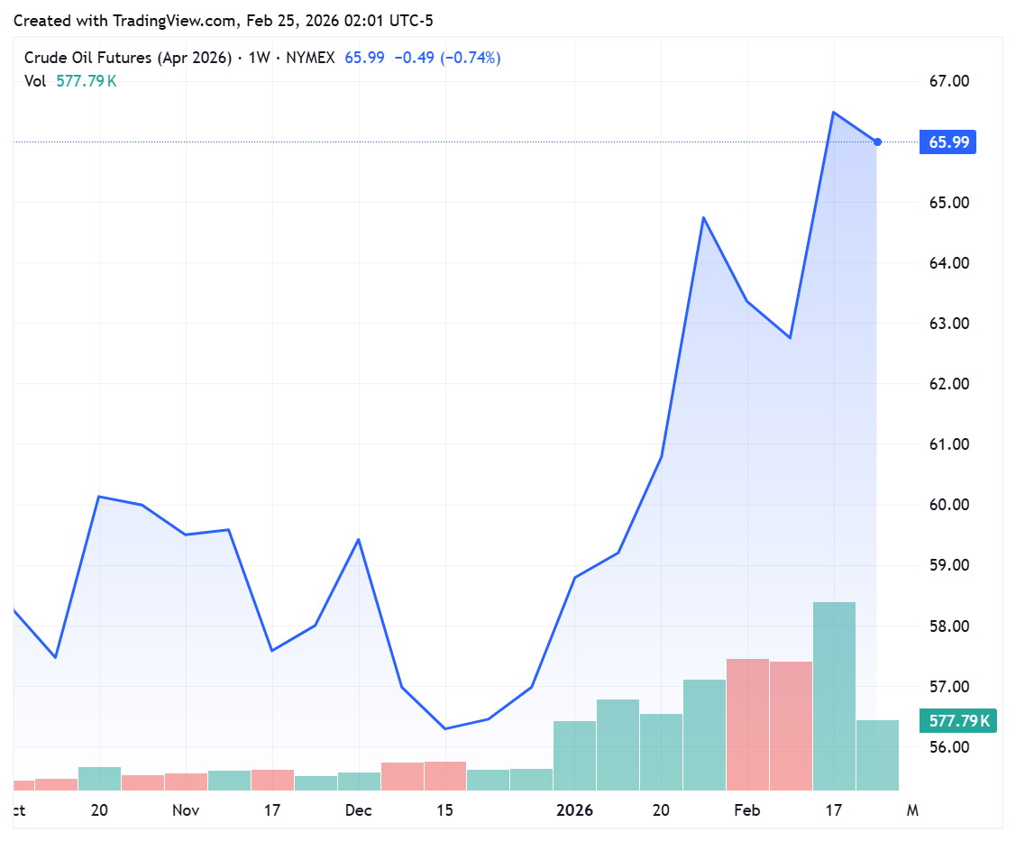 原油价格反弹的主要原因是地缘政治危机引发的原油运输担忧、美国冬季恶劣天气影响炼厂开工和油轮运费上涨带来的成本传导。然而,2026年全球原油市场处于供应过剩格局决定了油价反弹的高度有限。产油国对全球原油市场份额的争夺意味着供应很难下降,地缘政治危机引发的涨势难以持续。