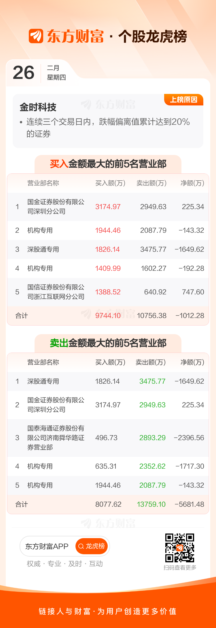 金时科技(002951)龙虎榜数据(02-26)