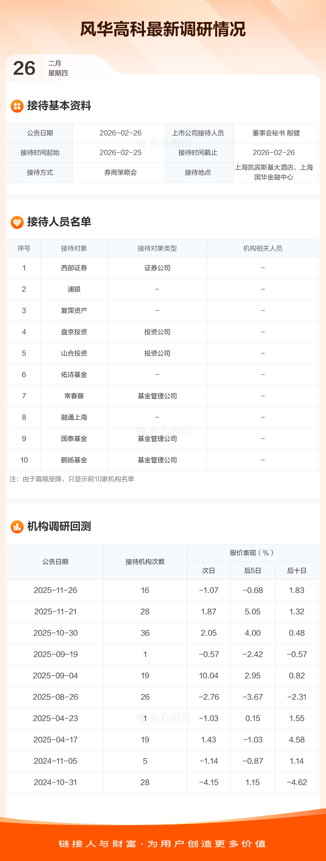 风华高科2月26日公告称,2月25日至2月26日接待西部证券等104家机构调研。接待人员包括董事会秘书 殷健。