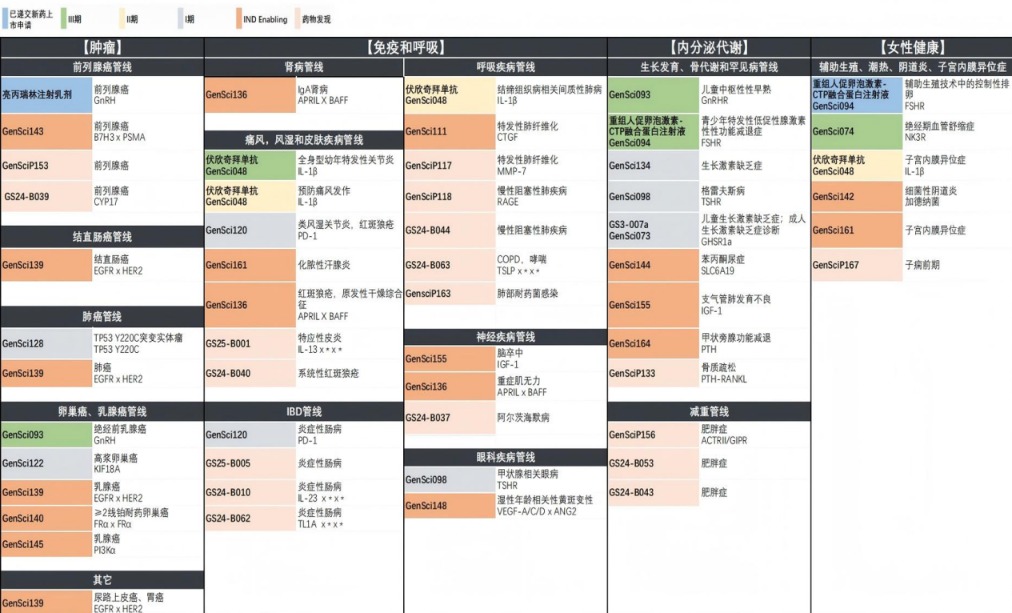 (截至2025年6月末,金赛药业部分药物研发管线进度)