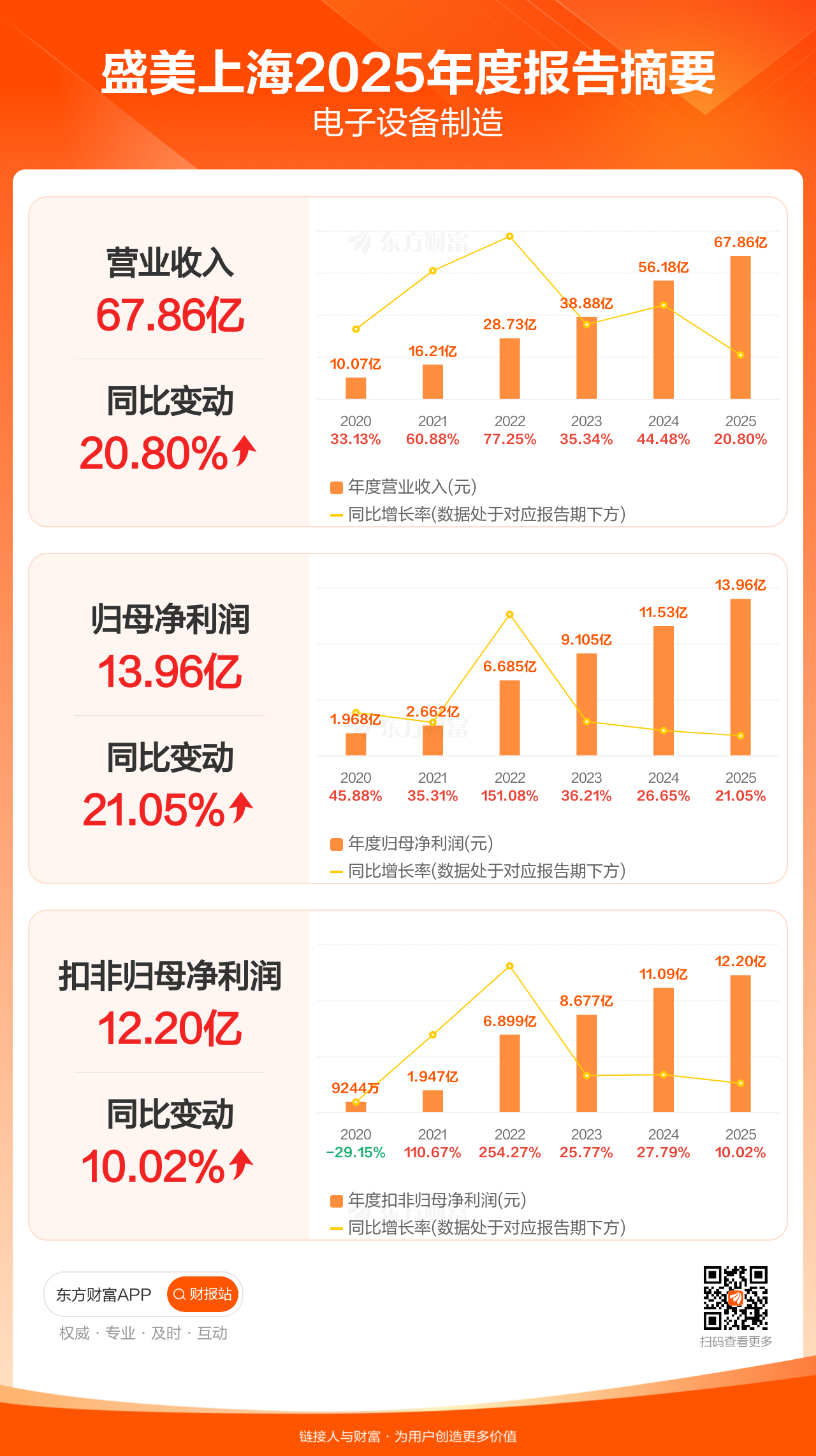 盛美上海2月27日发布2025年年报显示,公司全年实现营业收入67.86亿元,同比增长20.80%;归母净利润13.96亿元,同比增长21.05%;扣非归母净利润12.20亿元,同比增长10.02%。每股EPS3.10元,低于机构一致预测的3.97元。