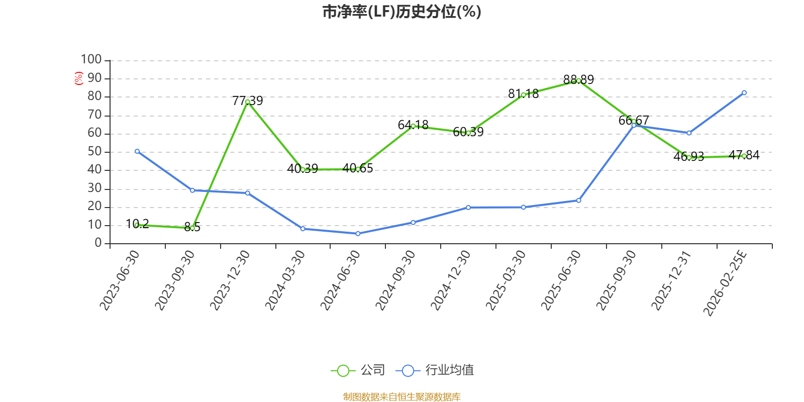 市盈率、市净率为负时,不显示当期分位数,会导致折线图中断。