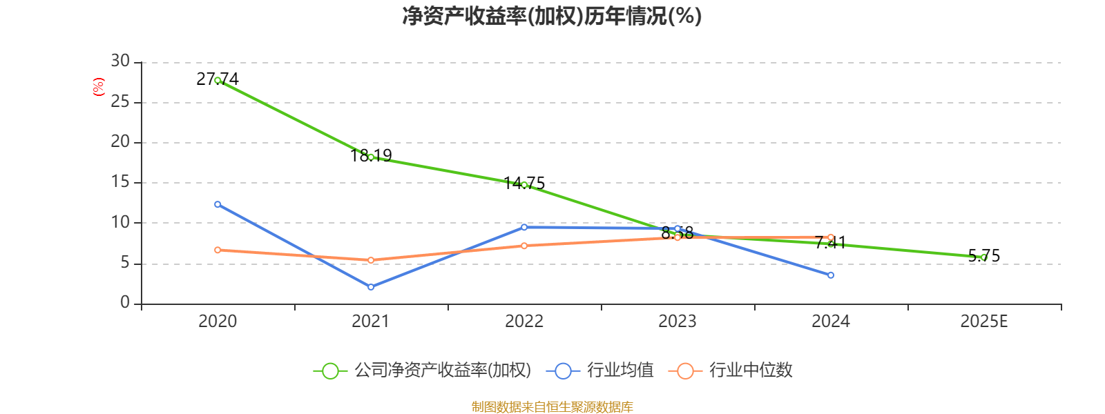 数据显示,2025年公司加权平均净资产收益率为5.75%,较上年同期下降1.66个百分点。