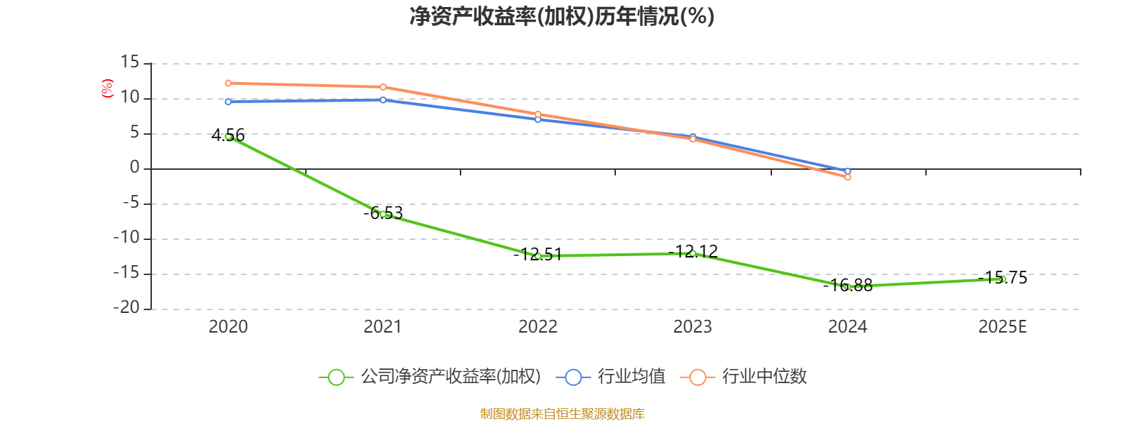 数据显示,2025年公司加权平均净资产收益率为-15.75%,较上年同期上升1.13个百分点。