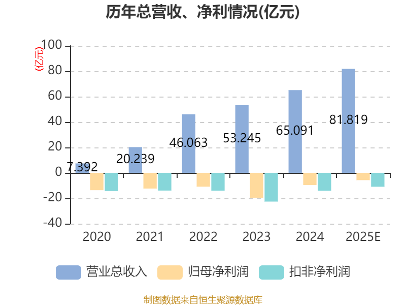 中证智能财讯芯联集成(688469)2月26日晚间披露2025年业绩快报,公司实现营业收入81.82亿元,同比增长25.7%;归母净利润亏损5.74亿元,上年同期亏损9.62亿元;扣非净利润亏损10.93亿元,上年同期亏损14.1亿元;基本每股收益-0.08元,加权平均净资产收益率为-4.77%。以最新收盘价计算,市净率(LF)约4.97倍,市销率(TTM)约8.89倍。