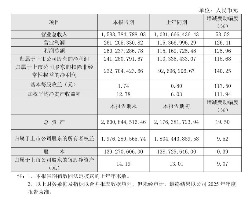 2月27日,鼎通科技(688668)发布公告,2025年度公司实现营业总收入约为15.84亿元,同比增长53.52%;归母净利润约为2.41亿元,同比增长118.68%。
