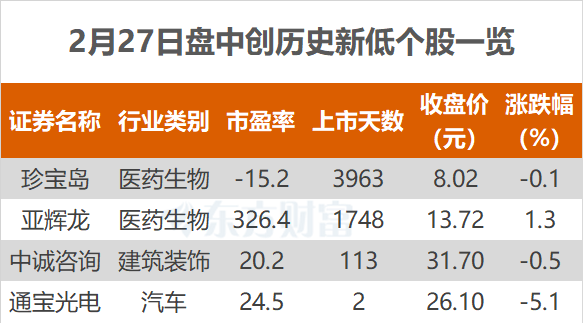 东方财富Choice数据显示,今日有4只个股盘中股价创历史新低。