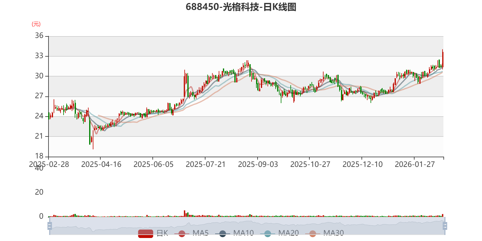中证智能财讯光格科技(688450)2月27日晚间披露2025年业绩快报,公司实现营业收入2.16亿元,同比增长18.1%;归母净利润亏损6491.21万元,上年同期亏损6756.65万元;扣非净利润亏损7408.23万元,上年同期亏损7230.39万元;基本每股收益-0.98元,加权平均净资产收益率为-6.65%。以最新收盘价计算,市净率(LF)约2.31倍,市销率(TTM)约10.05倍。