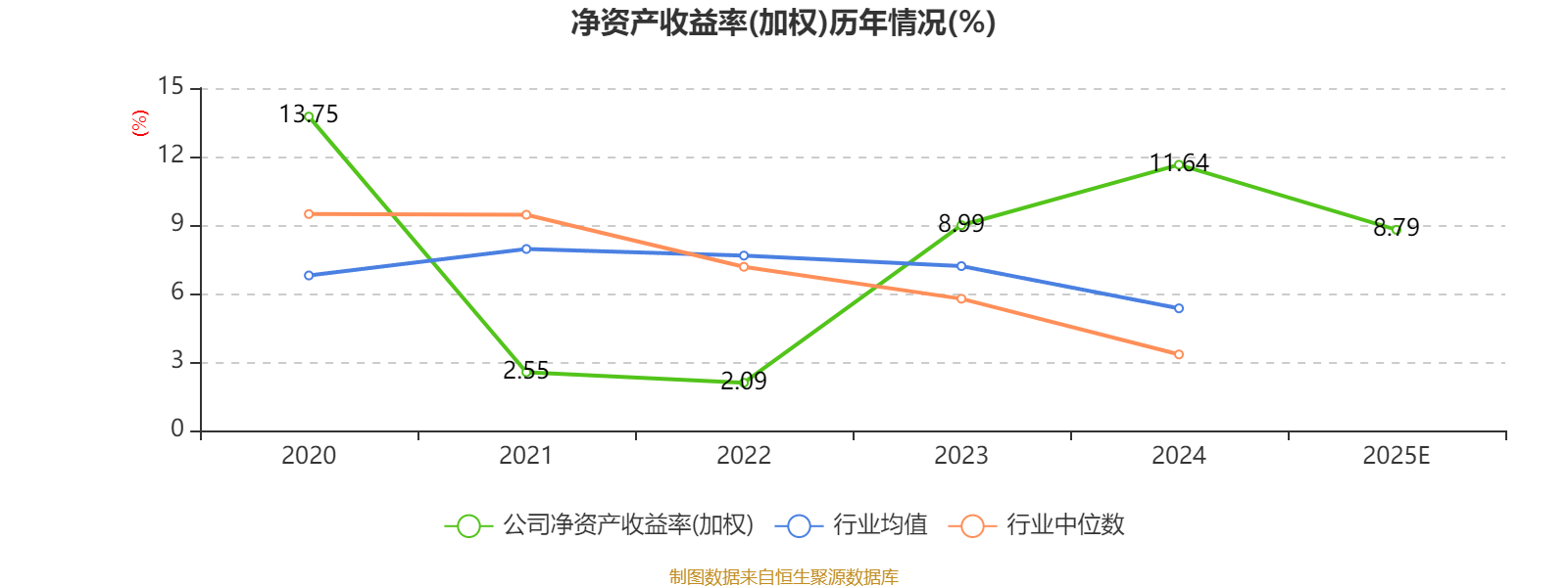 数据显示,2025年公司加权平均净资产收益率为8.79%,较上年同期下降2.85个百分点。