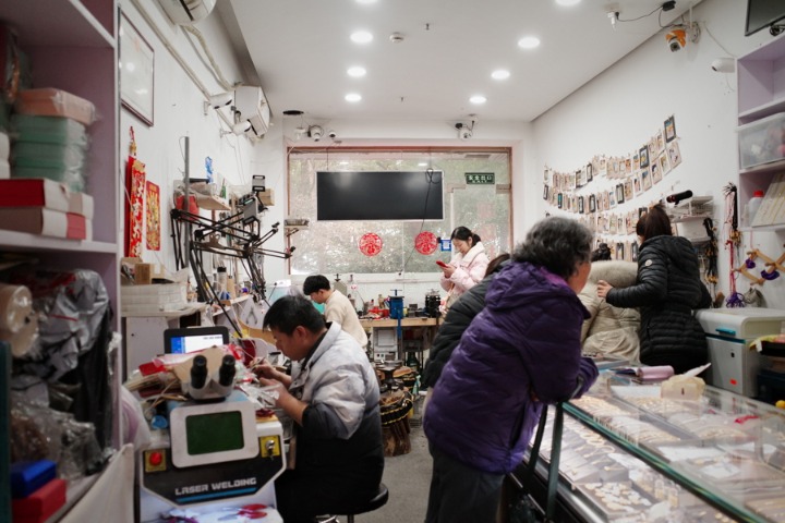 周宝林从2013年起入行,最早是开银饰店,也做金银的销售、加工,慢慢地发展为打金店,店铺从闵行搬到了豫园。“我现在有4家门店,在嘉定安亭也开了一家。”他的业务比较广泛,做黄金回收、做打金生意,也做首饰镶嵌和维修。