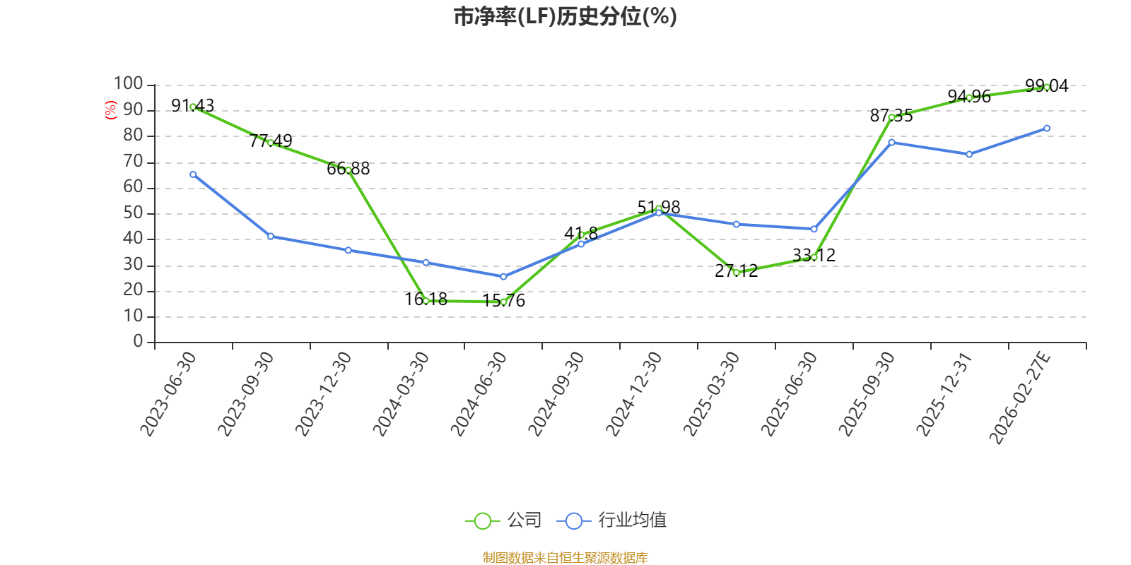 市盈率、市净率为负时,不显示当期分位数,会导致折线图中断。