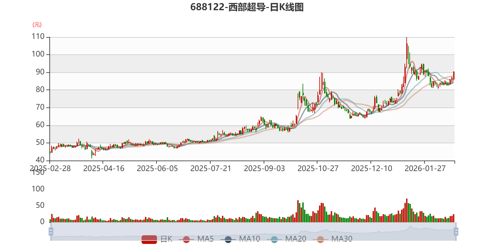 中证智能财讯西部超导(688122)2月27日晚间披露2025年业绩快报,公司实现营业收入52.37亿元,同比增长13.55%;归母净利润8.4亿元,同比增长4.95%;扣非净利润6.88亿元,同比下降3.42%;基本每股收益1.2937元,加权平均净资产收益率为12.17%。以2月27日收盘价计算,西部超导目前市盈率(TTM)约为69.77倍,市净率(LF)约8.48倍,市销率(TTM)约10.93倍。