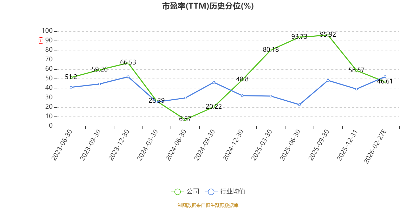 市盈率、市净率为负时,不显示当期分位数,会导致折线图中断。