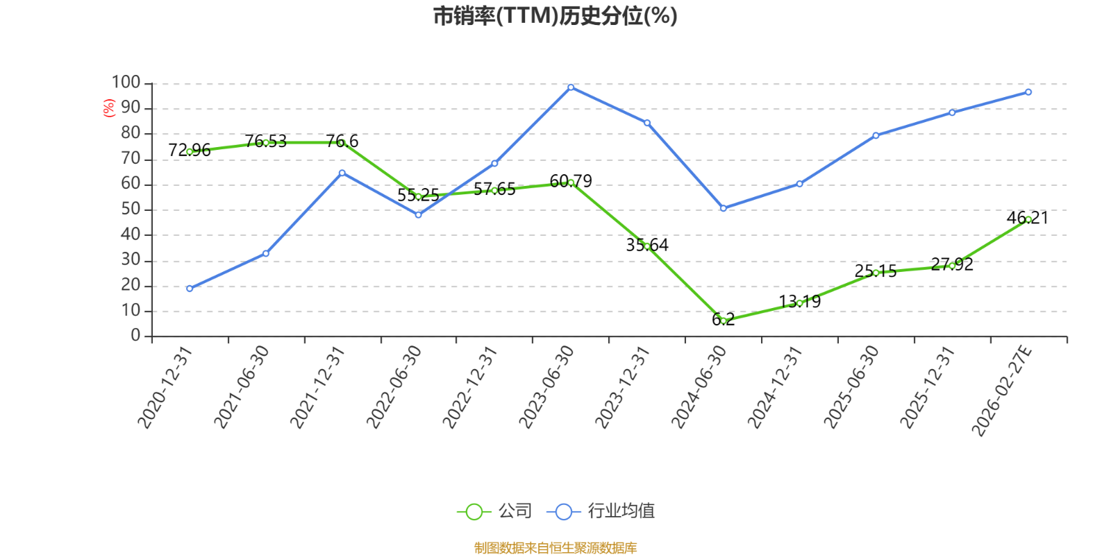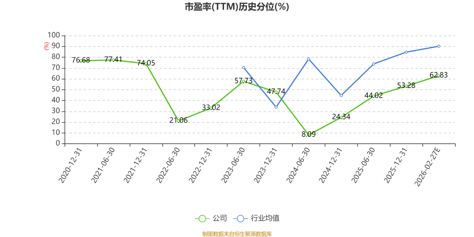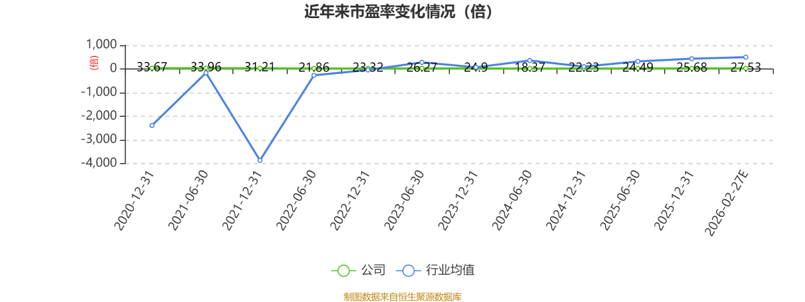 市盈率、市净率为负时,不显示当期分位数,会导致折线图中断。