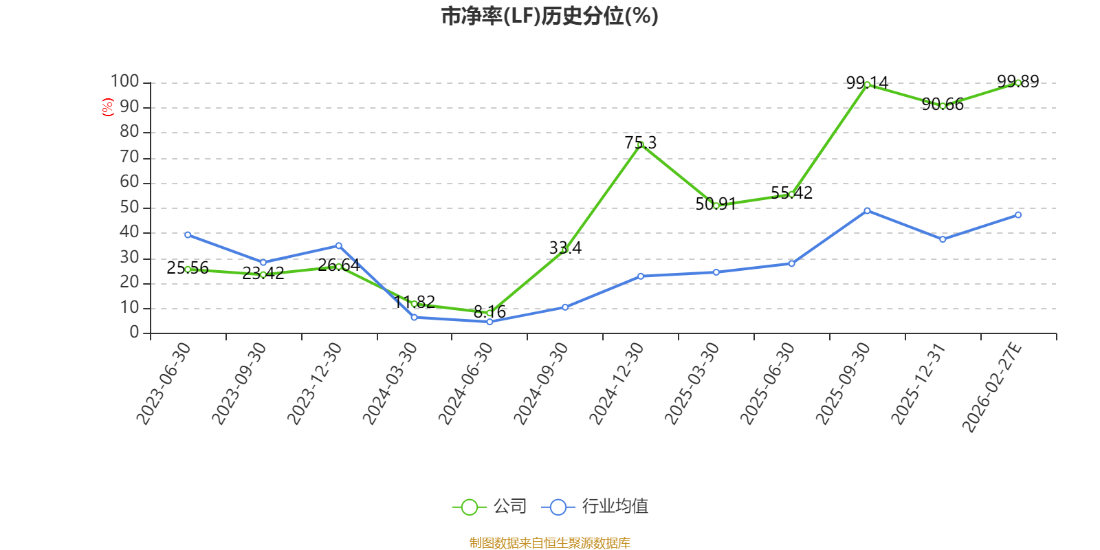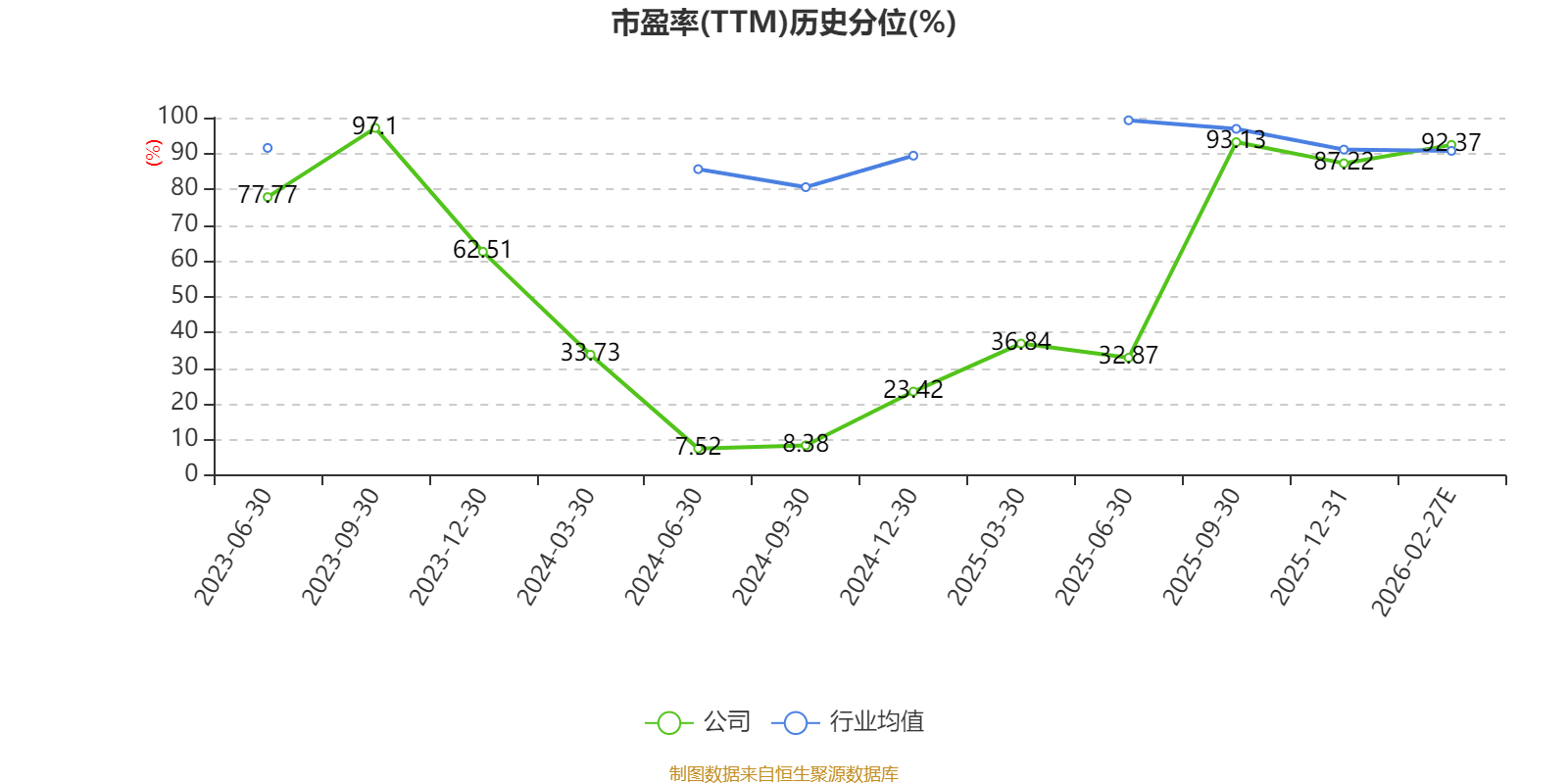 市盈率、市净率为负时,不显示当期分位数,会导致折线图中断。