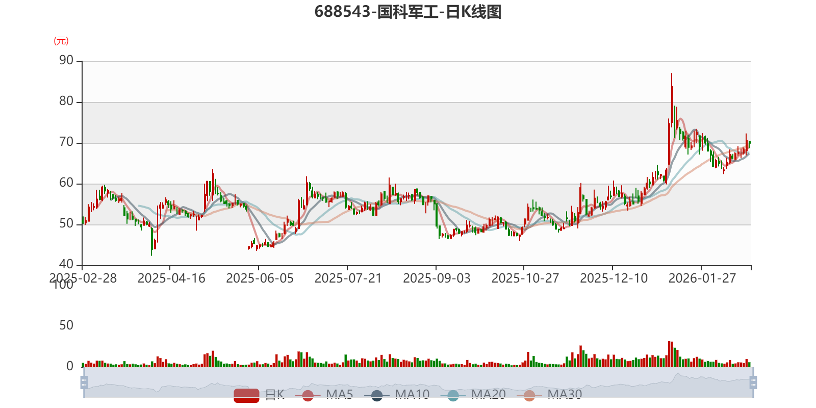 中证智能财讯国科军工(688543)2月27日晚间披露2025年业绩快报,公司实现营业收入14.1亿元,同比增长17.1%;归母净利润2.48亿元,同比增长24.55%;扣非净利润2.28亿元,同比增长25.85%;基本每股收益1.19元,加权平均净资产收益率为10.77%。以2月27日收盘价计算,国科军工目前市盈率(TTM)约为58.99倍,市净率(LF)约6.36倍,市销率(TTM)约12.01倍。