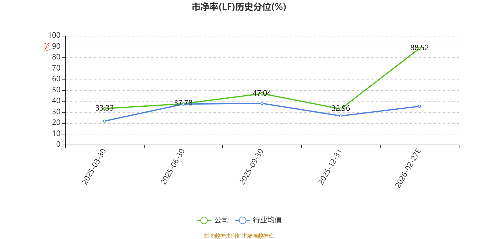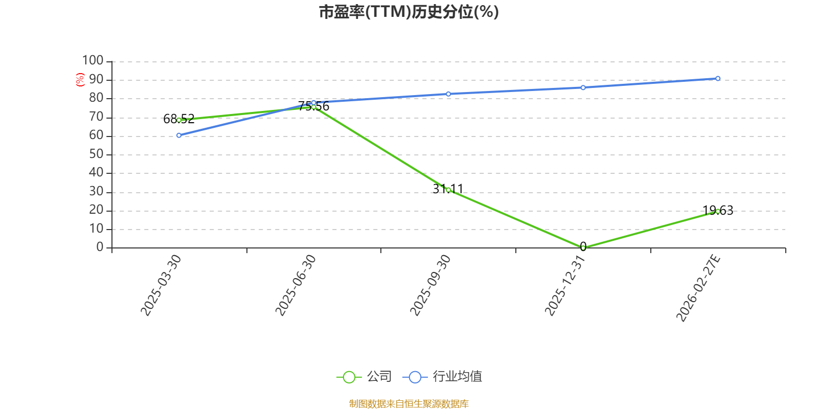 市盈率、市净率为负时,不显示当期分位数,会导致折线图中断。