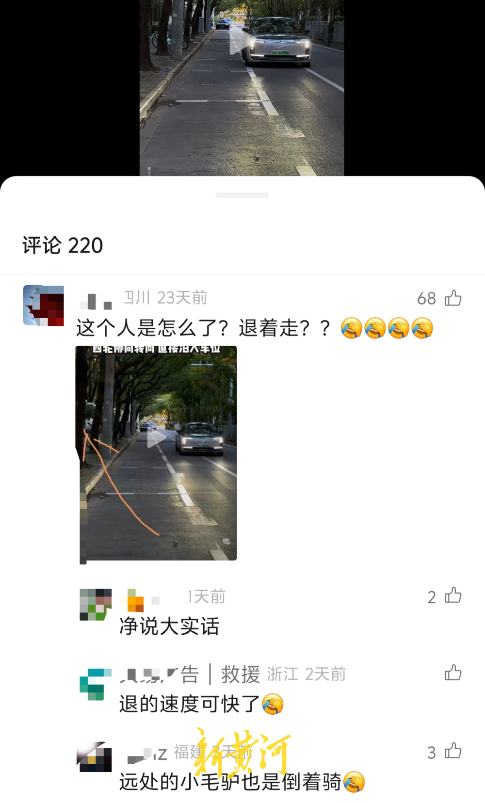 这条视频的评论区,有网友问到“这个人是怎么了,退着走?”有人调侃道“退的速度可快了。”