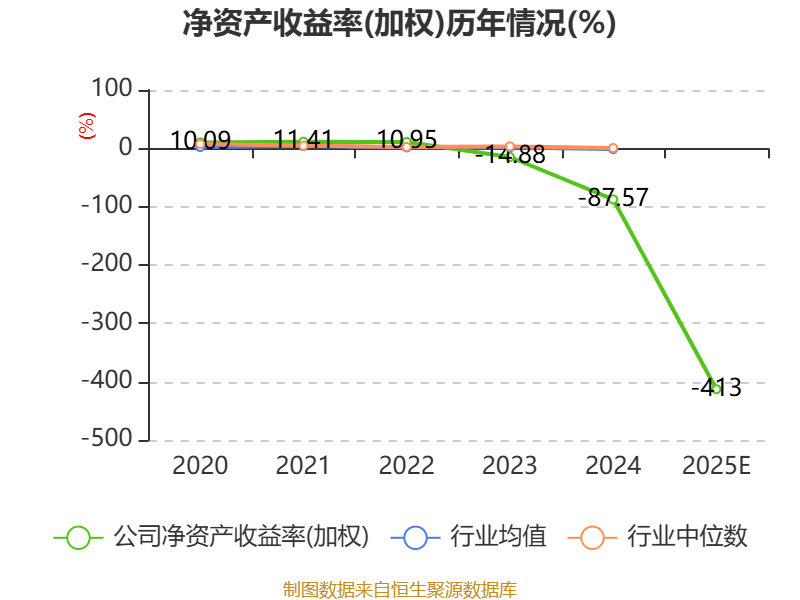 数据显示,2025年公司加权平均净资产收益率为-413%,较上年同期下降325.43个百分点。