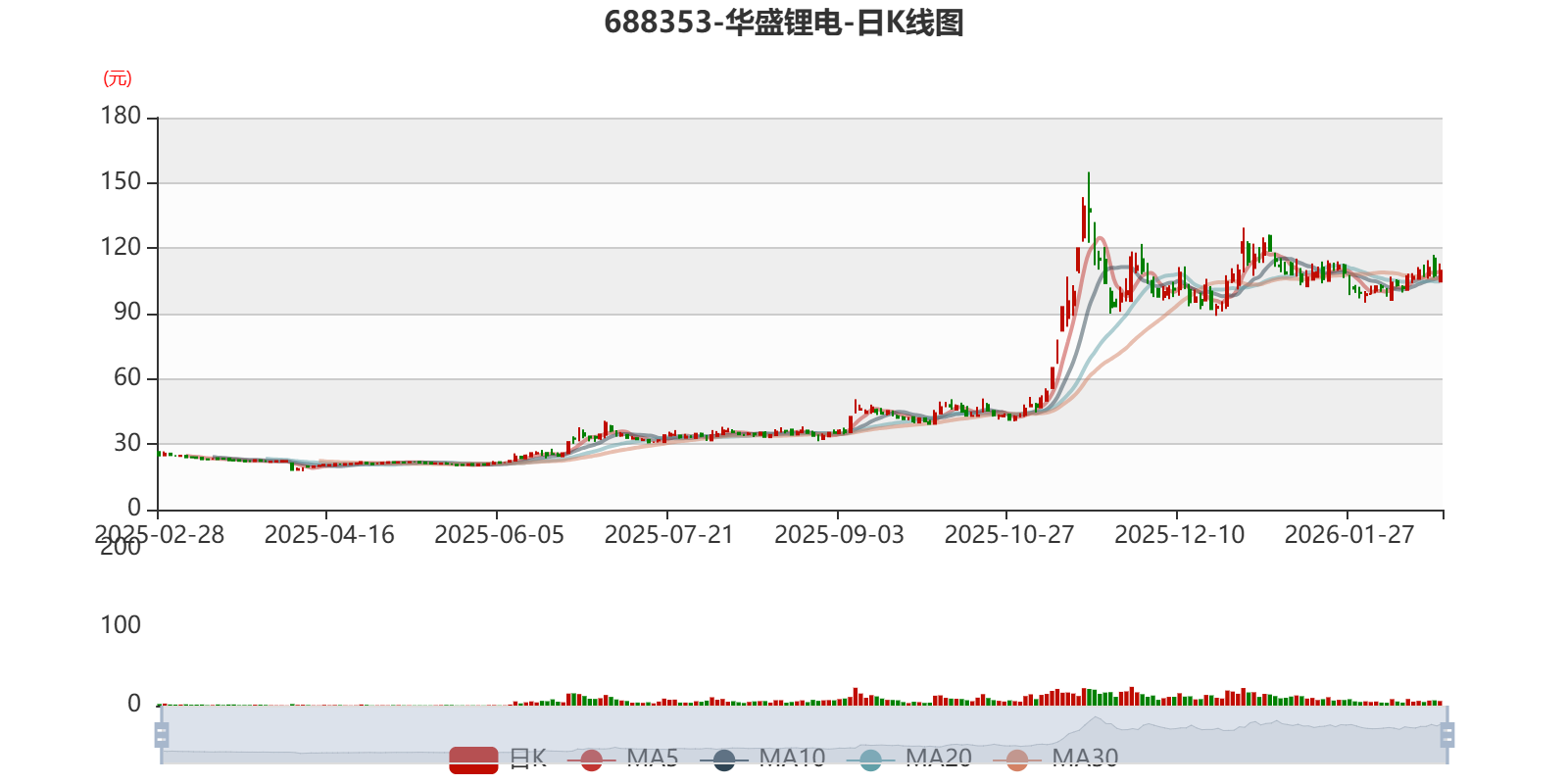 中证智能财讯华盛锂电(688353)2月27日晚间披露2025年业绩快报,公司实现营业收入8.69亿元,同比增长72.21%;归母净利润1326.83万元,同比扭亏;扣非净利润亏损5491.61万元,上年同期亏损2.09亿元;基本每股收益0.08元,加权平均净资产收益率为0.38%。以2月27日收盘价计算,华盛锂电目前市盈率(TTM)约为1318.84倍,市净率(LF)约5.3倍,市销率(TTM)约24.59倍。