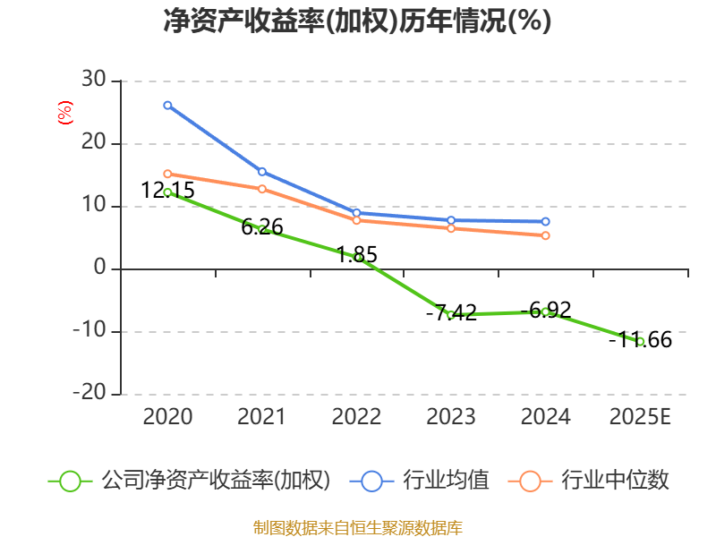 数据显示,2025年公司加权平均净资产收益率为-11.66%,较上年同期下降4.74个百分点。