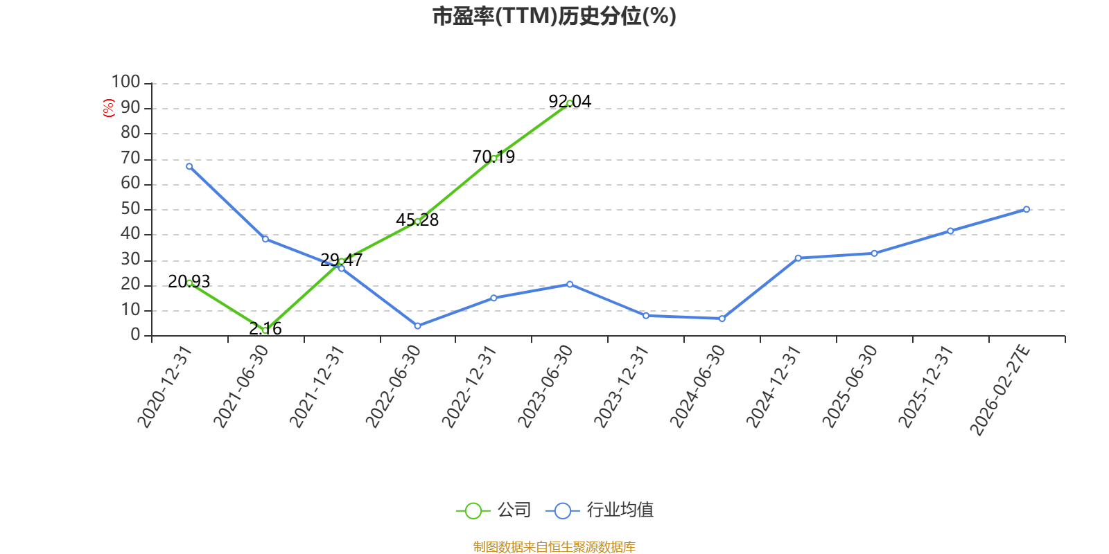市盈率、市净率为负时,不显示当期分位数,会导致折线图中断。