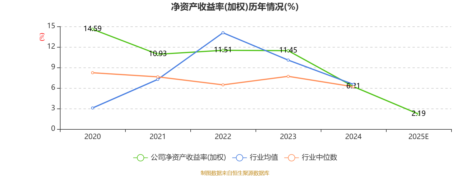 数据显示,2025年公司加权平均净资产收益率为2.19%,较上年同期下降4.02个百分点。