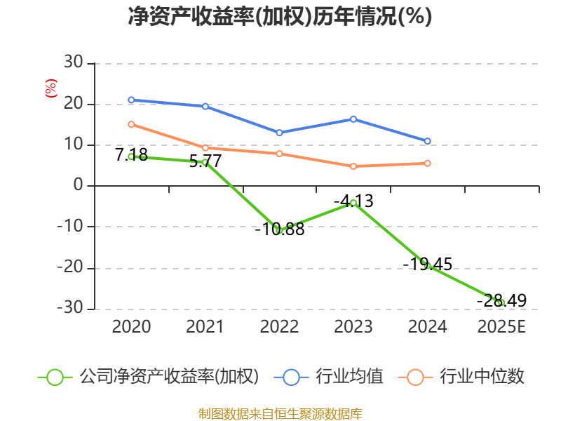 数据显示,2025年公司加权平均净资产收益率为-28.49%,较上年同期下降9.04个百分点。