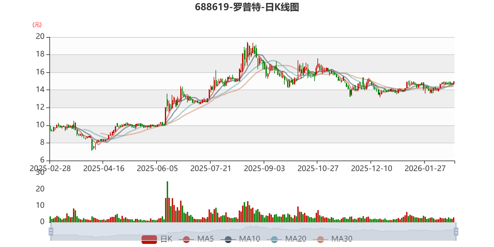 中证智能财讯罗普特(688619)2月27日晚间披露2025年业绩快报,公司实现营业收入1.55亿元,同比增长8.11%;归母净利润亏损2.22亿元,上年同期亏损1.93亿元;扣非净利润亏损2.28亿元,上年同期亏损2.04亿元;基本每股收益-1.25元,加权平均净资产收益率为-28.49%。以最新收盘价计算,市净率(LF)约3.47倍,市销率(TTM)约15.85倍。