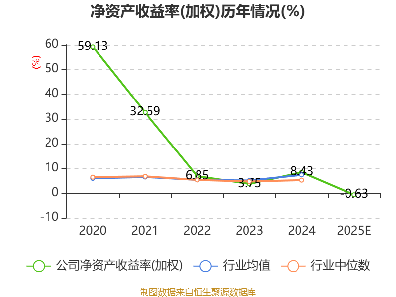 数据显示,2025年公司加权平均净资产收益率为-0.63%,较上年同期下降9.06个百分点。