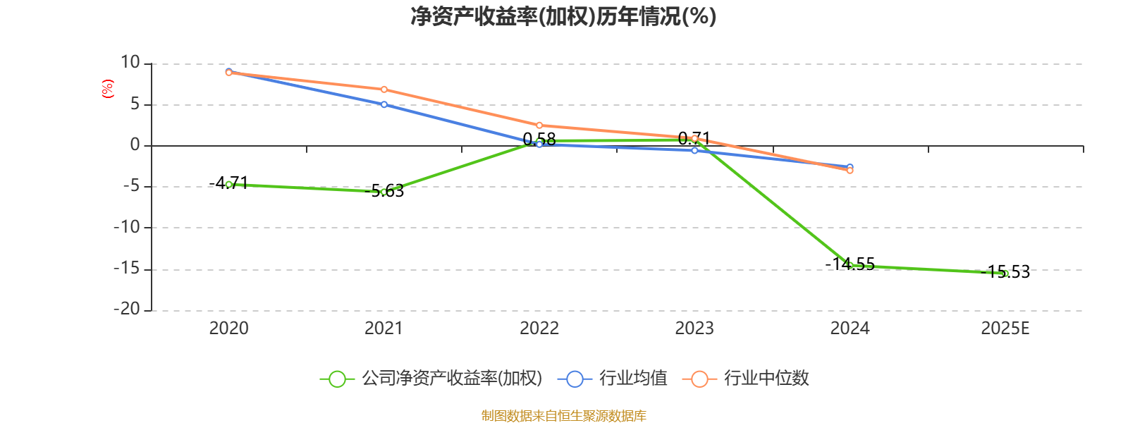 数据显示,2025年公司加权平均净资产收益率为-15.53%,较上年同期下降0.98个百分点。