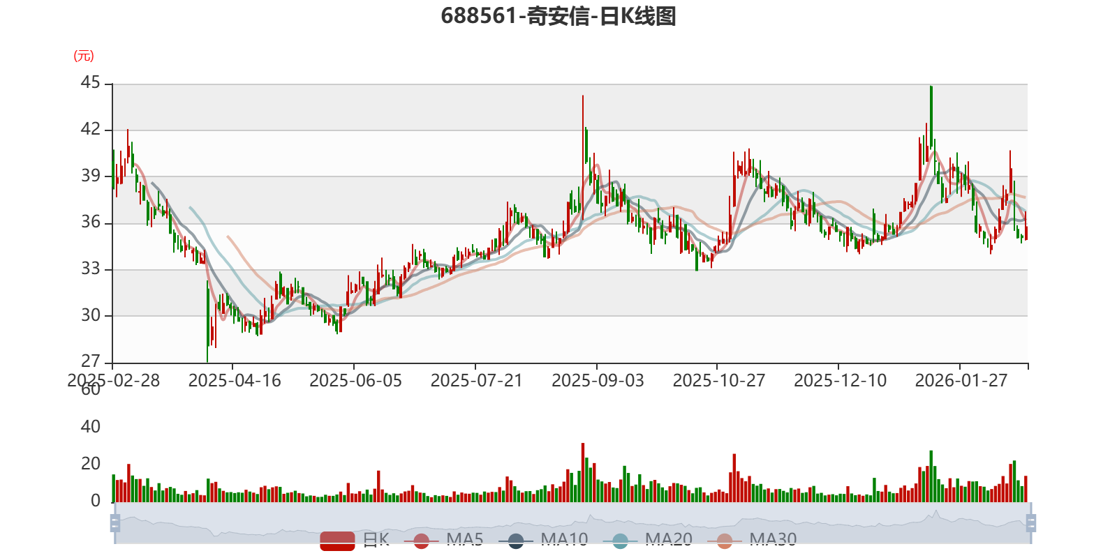中证智能财讯奇安信(688561)2月27日晚间披露2025年业绩快报,公司实现营业收入43.92亿元,同比增长0.97%;归母净利润亏损12.62亿元,上年同期亏损13.79亿元;扣非净利润亏损15.09亿元,上年同期亏损16.12亿元;基本每股收益-1.85元,加权平均净资产收益率为-15.53%。以最新收盘价计算,市净率(LF)约3倍,市销率(TTM)约5.45倍。