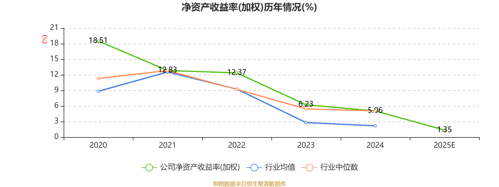 数据显示,2025年公司加权平均净资产收益率为1.35%,较上年同期下降3.71个百分点。