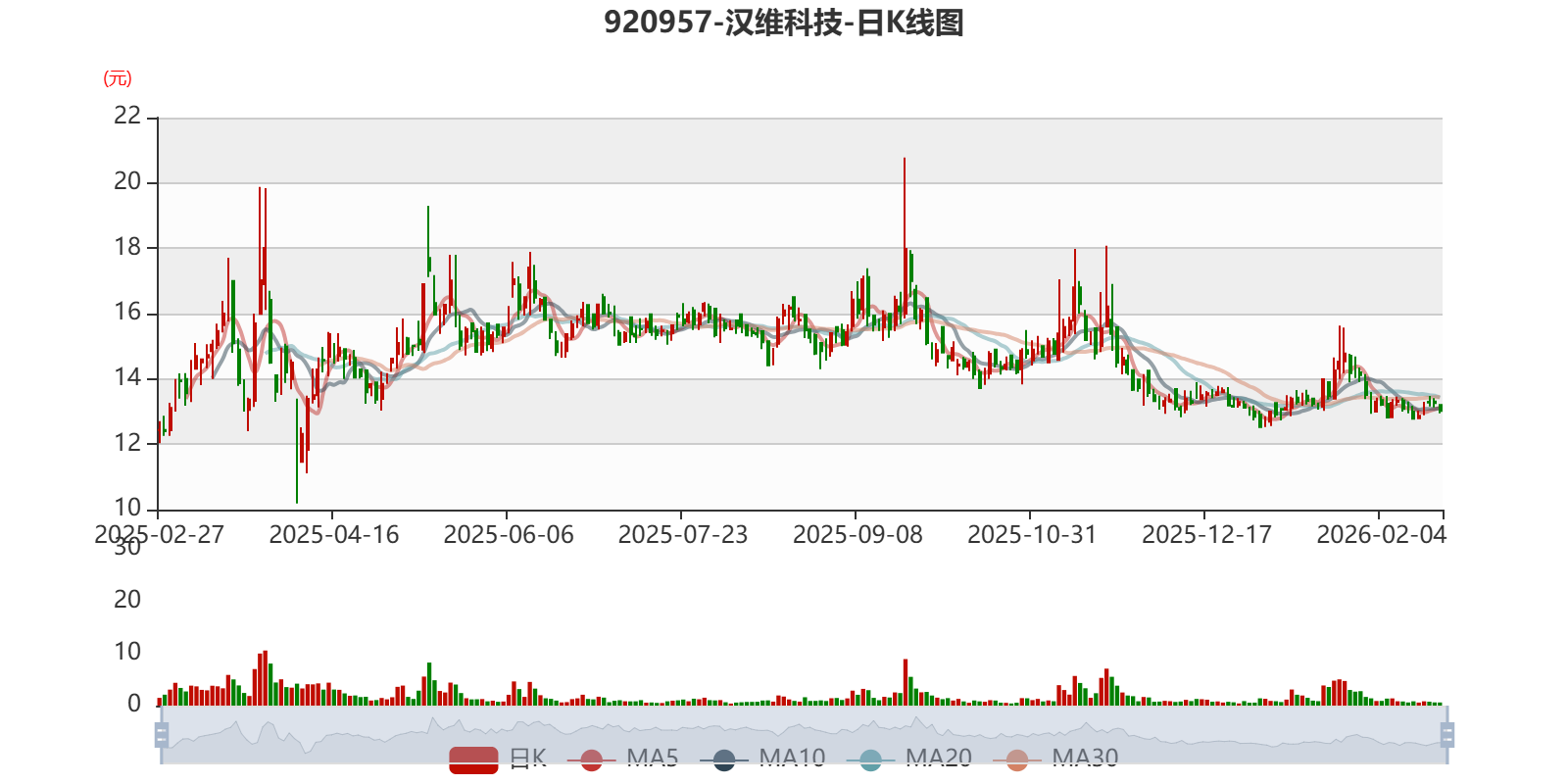 中证智能财讯汉维科技(920957)2月27日晚间披露2025年业绩快报,公司实现营业收入6.15亿元,同比增长4.75%;归母净利润535.21万元,同比下降73.15%;扣非净利润435.63万元,同比下降75.22%;基本每股收益0.05元,加权平均净资产收益率为1.35%。以2月27日收盘价计算,汉维科技目前市盈率(TTM)约为261.03倍,市净率(LF)约3.56倍,市销率(TTM)约2.27倍。