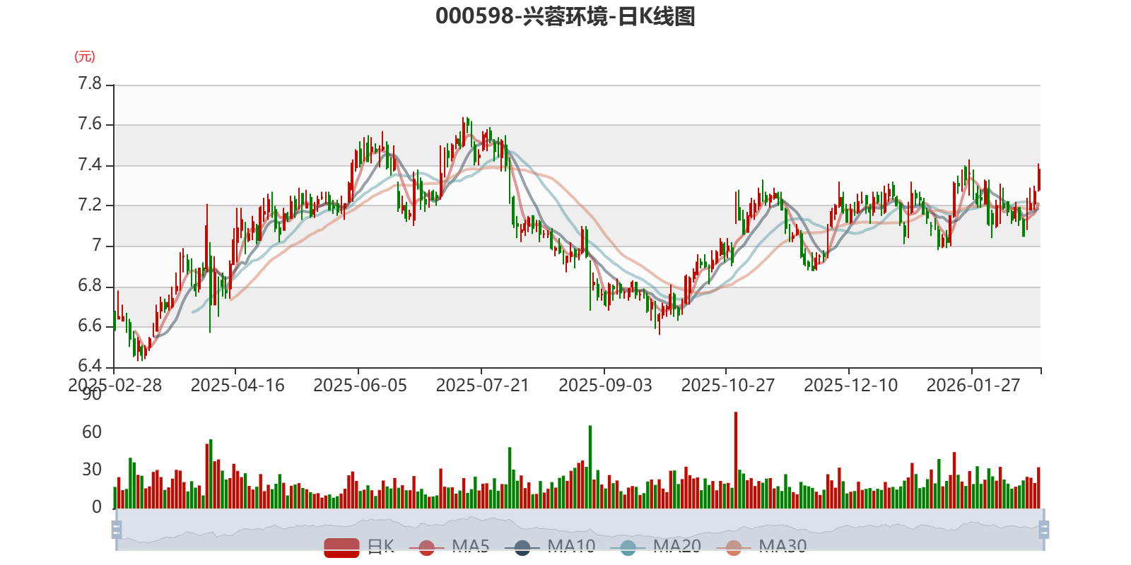 中证智能财讯兴蓉环境(000598)2月27日晚间披露2025年业绩快报,公司实现营业收入90.68亿元,同比增长0.21%;归母净利润20.04亿元,同比增长0.41%;扣非净利润19.65亿元,同比增长0.12%;基本每股收益0.67元,加权平均净资产收益率为10.59%。以2月27日收盘价计算,兴蓉环境目前市盈率(TTM)约为10.99倍,市净率(LF)约1.13倍,市销率(TTM)约2.35倍。