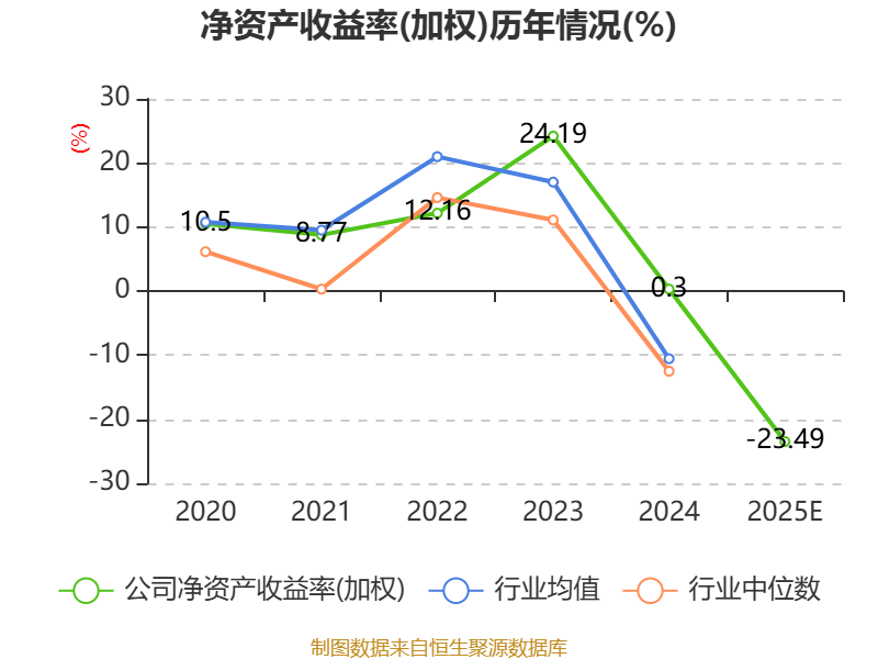 数据显示,2025年公司加权平均净资产收益率为-23.49%,较上年同期下降23.79个百分点。