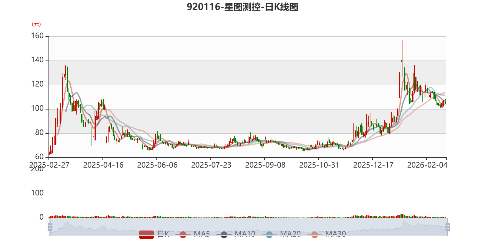 中证智能财讯星图测控(920116)2月27日晚间披露2025年业绩快报,公司实现营业收入3.25亿元,同比增长12.66%;归母净利润1.01亿元,同比增长18.66%;扣非净利润6382.77万元,同比增长5.83%;基本每股收益0.63元,加权平均净资产收益率为18.77%。以2月27日收盘价计算,星图测控目前市盈率(TTM)约为164.8倍,市净率(LF)约28.31倍,市销率(TTM)约51.15倍。